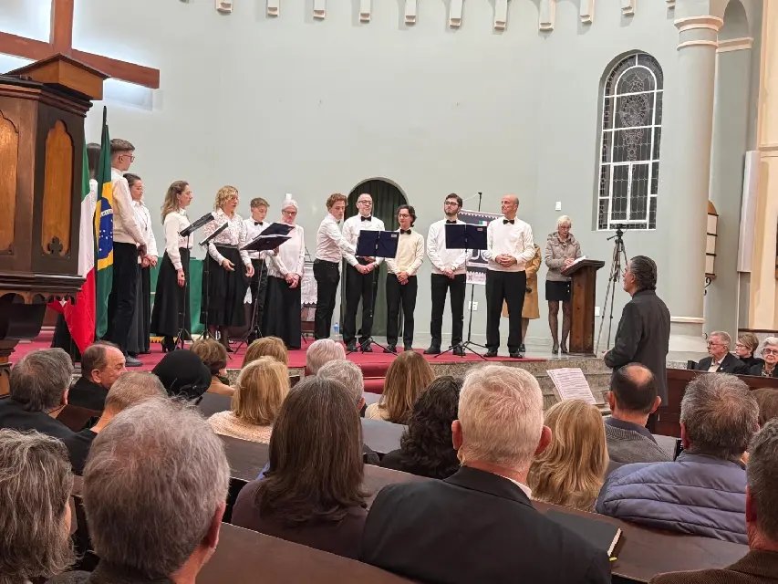 A apresentação, que integrou a programação dos 165 anos de aniversário do município, foi marcada pela interpretação de clássicos da música sacra e popular italiana — muitos deles pouco ou nunca antes executados ao vivo na cidade.