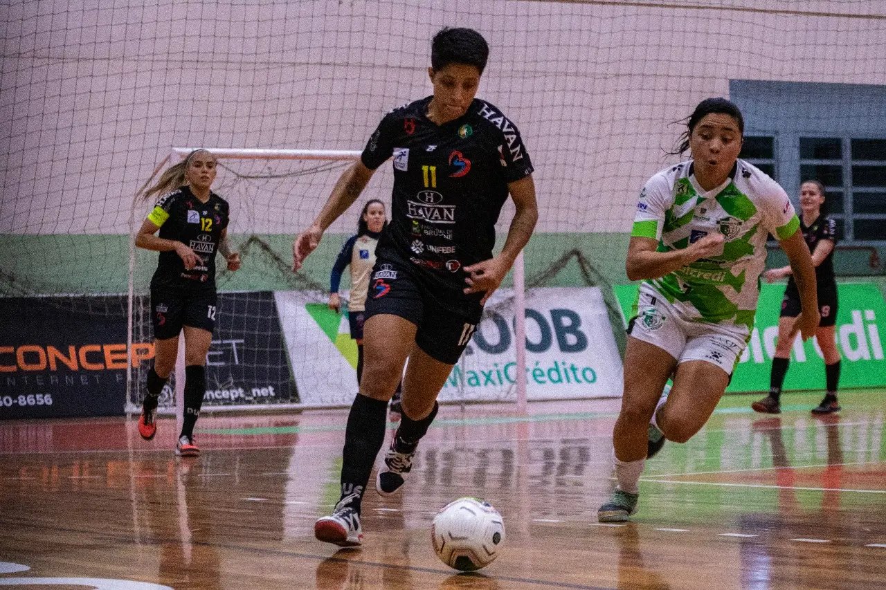 Jogando no ginásio do SESI Brusque, o Barateiro Havan Futsal recebeu a equipe do Resenhas, de Goiás, pela 12ª rodada da Liga Feminina de Futsal.