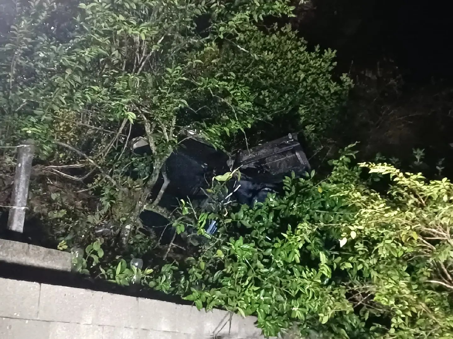 Quando os militares chegaram no local, um Fiat Palio preto, com placas de Brusque, havia saído da pista e caído em uma ribanceira de cerca de cinco metros. O carro ficou preso entre um muro e árvores, em uma área íngreme.