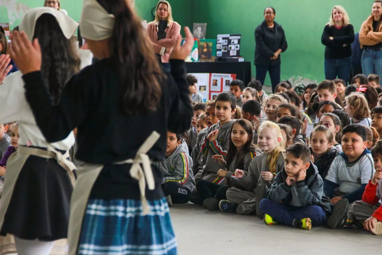 Na manhã desta quarta-feira (6), crianças da Escola Cívico-Militar Paquetá realizaram uma apresentação especial em alusão aos 150 anos da imigração italiana em Santa Catarina e aos 165 anos de Brusque. Durante o evento, os alunos puderam aprender, de forma didática, com os colegas, como foi a chegada dos italianos ao Brasil, bem como a história de nosso município.