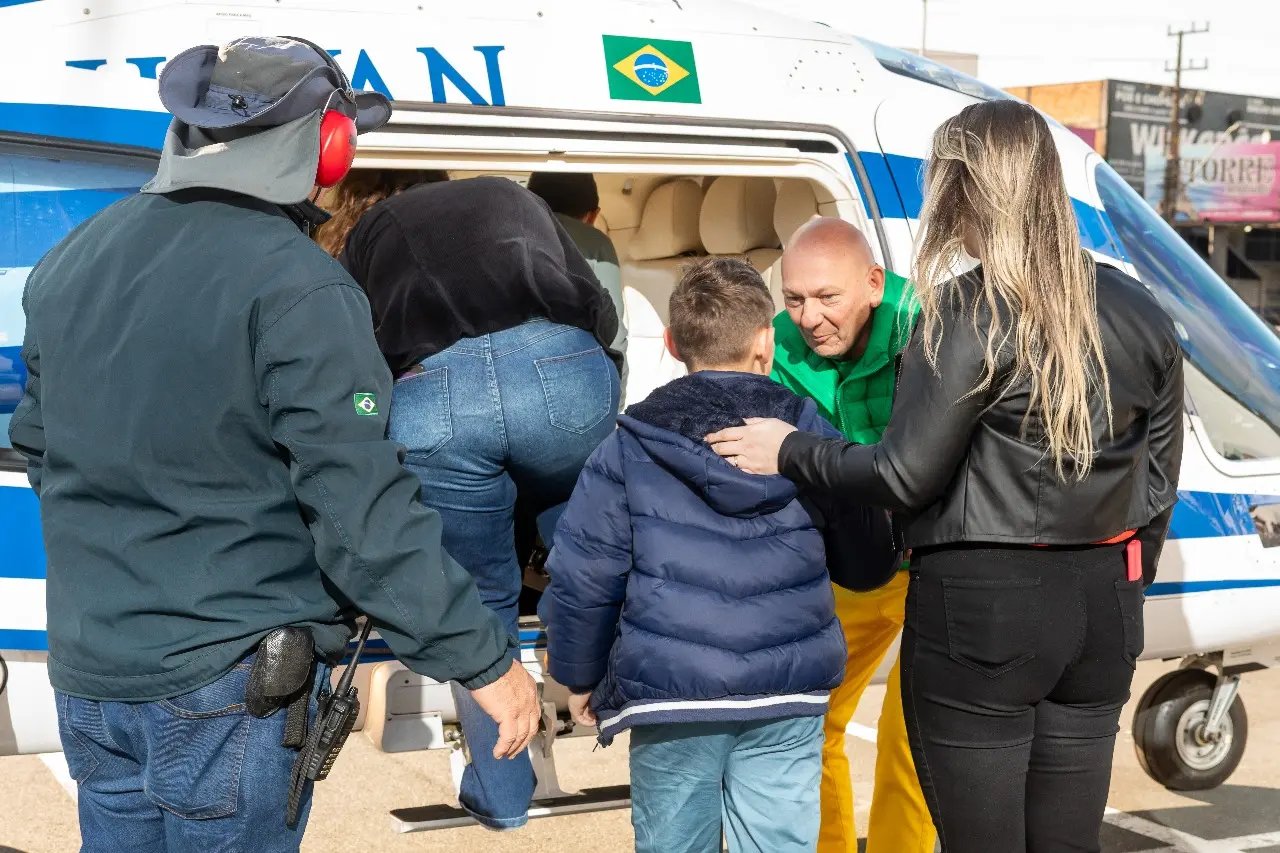 Maria Francisca Brestes Martins, que mora no bairro Águas Claras, em Brusque (SC), trouxe sua filha de 8 anos para voar de helicóptero pela primeira vez também. “Quando eu vi que tinha o sorteio, inscrevi todos os meus filhos e a Laura foi contemplada. Ela ficou muito feliz e eu também”, afirma.