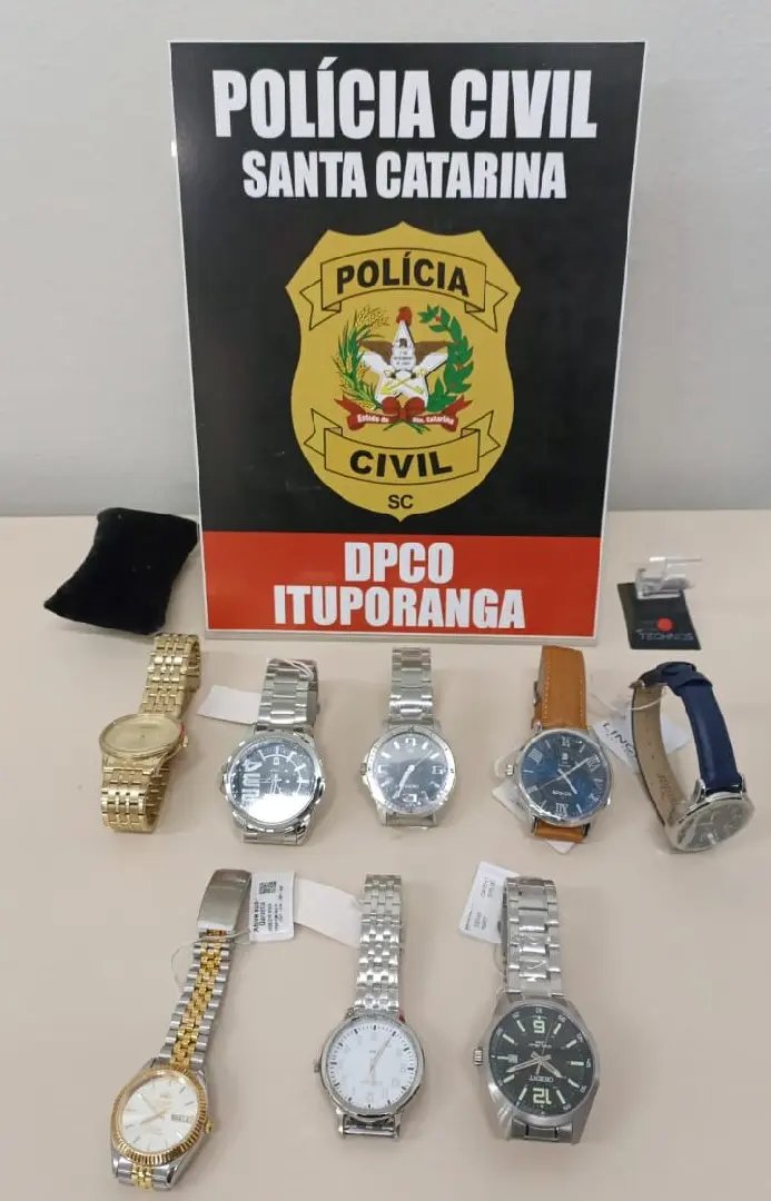 Na abordagem, os agentes encontraram oito relógios furtados dentro de uma sacola que ele carregava, além de uma faca presa à cintura. Posteriormente, mais três relógios foram recuperados em outro ponto, totalizando 11 itens subtraídos da relojoaria.