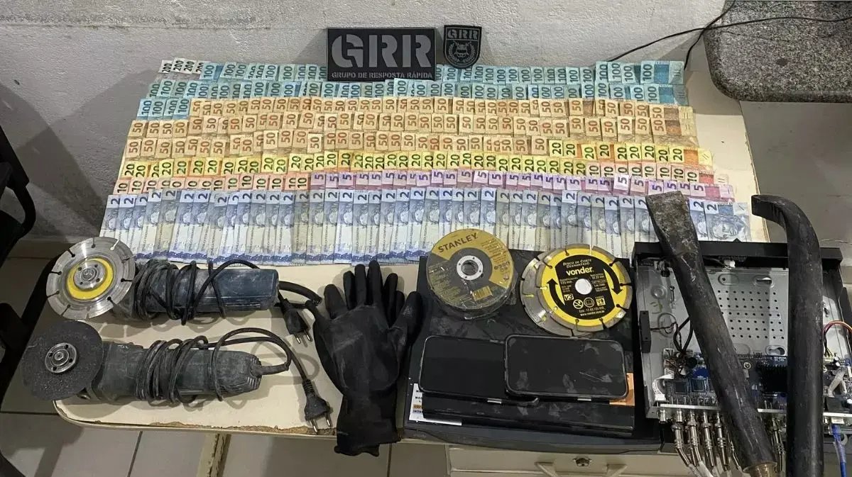No total, foram apreendidos R$ 15.496,00 em cédulas de diferentes valores, além de mochilas contendo alicates, esmerilhadeiras, chaves de fenda, serras manuais e um pé de cabra. O suspeito também levava os DVRs do sistema de câmeras de segurança do estabelecimento, que haviam sido retirados para tentar dificultar a investigação.