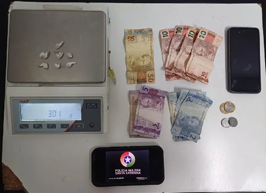 Conforme o relatório, uma guarnição fazia rondas pelo bairro Azambuja quando viu duas pessoas saírem do pátio de um posto de combustíveis assim que notaram a presença da viatura. Mas, os policiais os abordaram – um homem e uma mulher, de 35 e 30 anos – e encontraram sete pequenas pedras de substância análoga a crack, R$ 109 e um celular.
