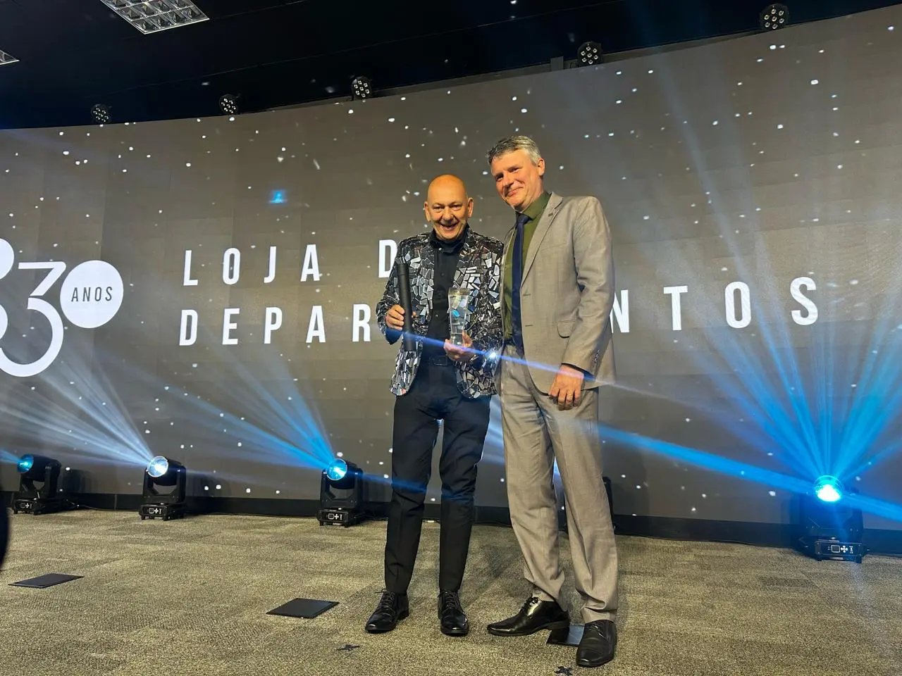 Vestido com o icônico terno brilhante usado nas comemorações dos 39 anos da Havan, Luciano Hang agradeceu o reconhecimento e aproveitou para enaltecer o trabalho das empresas catarinenses e de toda a população do estado.