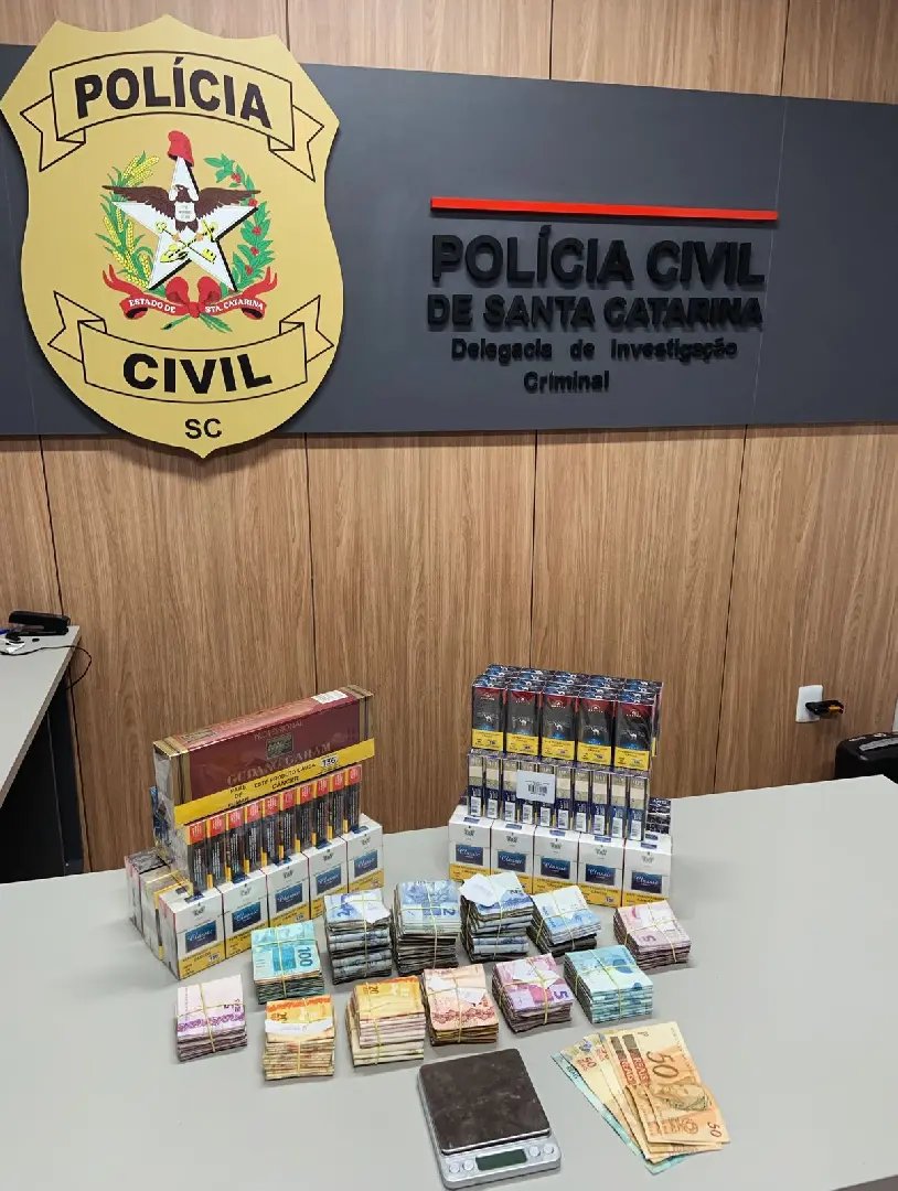 Durante a operação, foram apreendidos mais de R$30 mil em dinheiro, uma balança de precisão, aparelhos celulares, cocaína e cerca de 1.000 maços de cigarros sem nota fiscal. Os cigarros estavam expostos à venda em uma conveniência no bairro Azambuja.