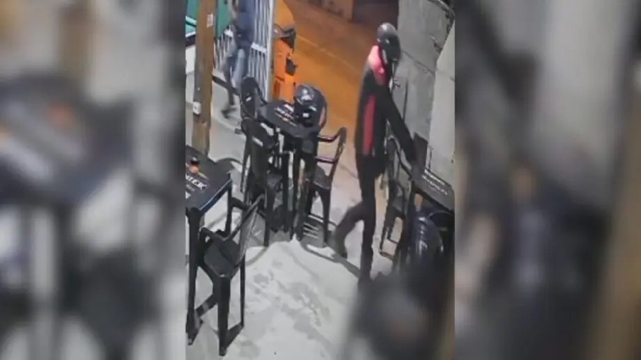 As imagens mostram o momento em que um homem chega de motocicleta, estaciona em frente ao estabelecimento e entra sem retirar o capacete. Já com a arma em mãos, ele engatilha a pistola e dispara diversas vezes contra a vítima, que estava sentada próxima à porta, de costas para a entrada. Sem chance de reação, o homem cai após ser atingido.