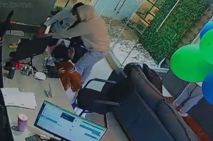 A ação foi registrada pelas câmeras de segurança e terminou de forma inesperada: após um barulho nos fundos da loja, um dos assaltantes fugiu pela janela, seguido pelos comparsas, que escaparam em um Renault Sandero branco com placas clonadas.