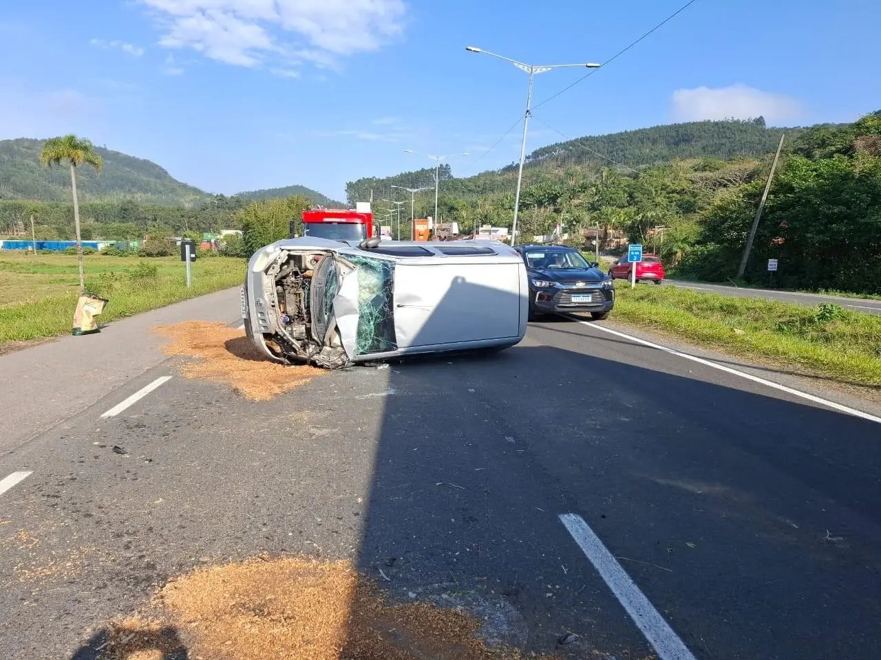 Uma motorista de 29 anos escapou ilesa depois que o carro que dirigia tombou na rodovia SC-A101D, em Penha, na manhã desta sexta-feira (22). O acidente ocorreu por volta das 08h40, no km 3,150, na localidade de Santa Lídia.