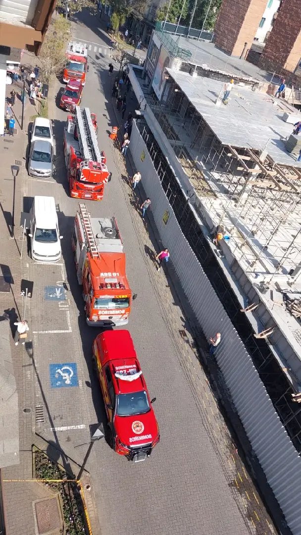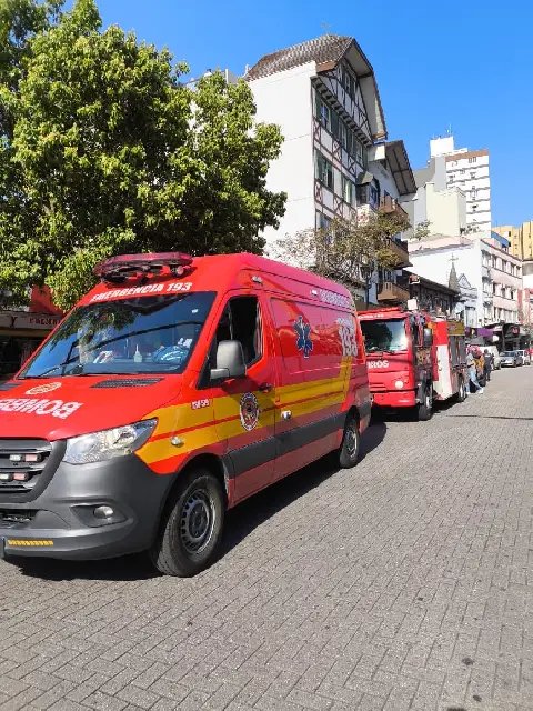 Um incêndio mobilizou equipes do Corpo de Bombeiros Militar, na tarde desta sexta-feira (22), em uma edificação comercial de cinco pavimentos localizada na Rua XV de Novembro, no Centro de Blumenau.