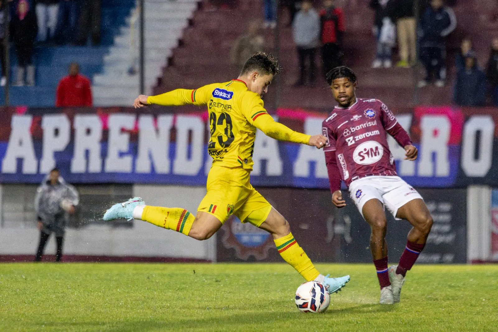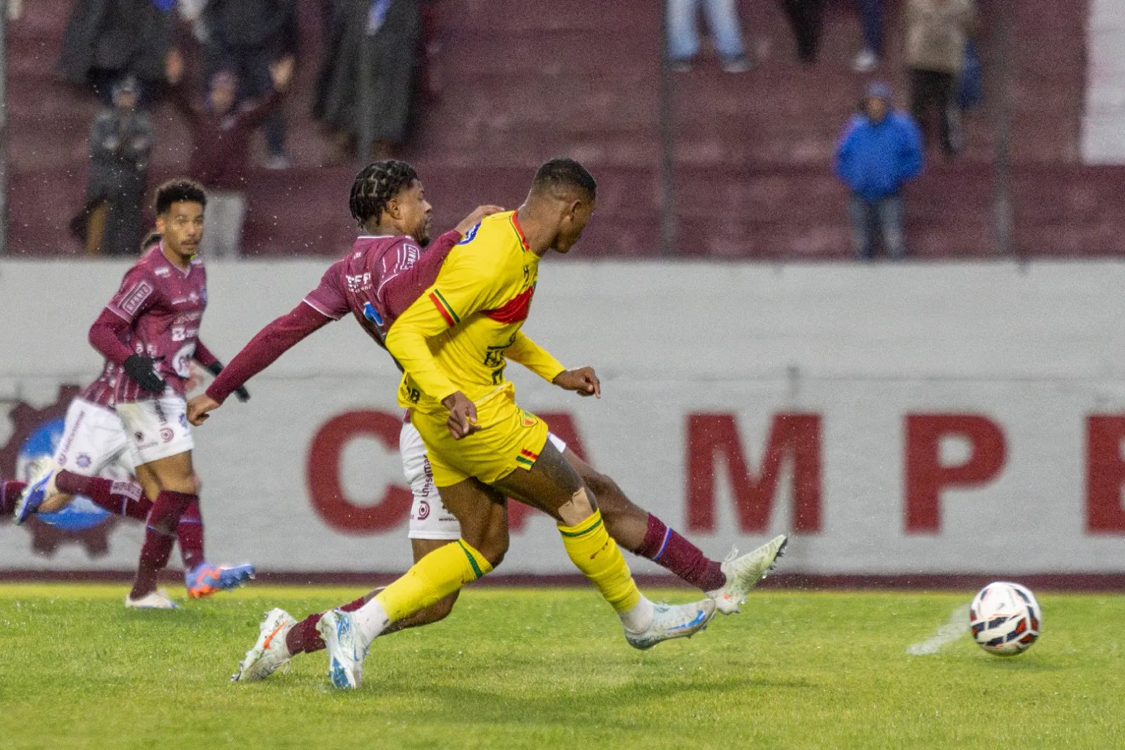 O primeiro tempo começou em ritmo intenso. O Caxias partiu para cima e quase abriu o placar logo no início, quando Nescau acertou a trave e levantou a torcida. A pressão inicial dos donos da casa parecia sufocar o Brusque, mas o Quadricolor não se intimidou. DG teve duas grandes oportunidades em sequência, obrigando Thiago Coelho a fazer defesas decisivas para manter o zero no placar.