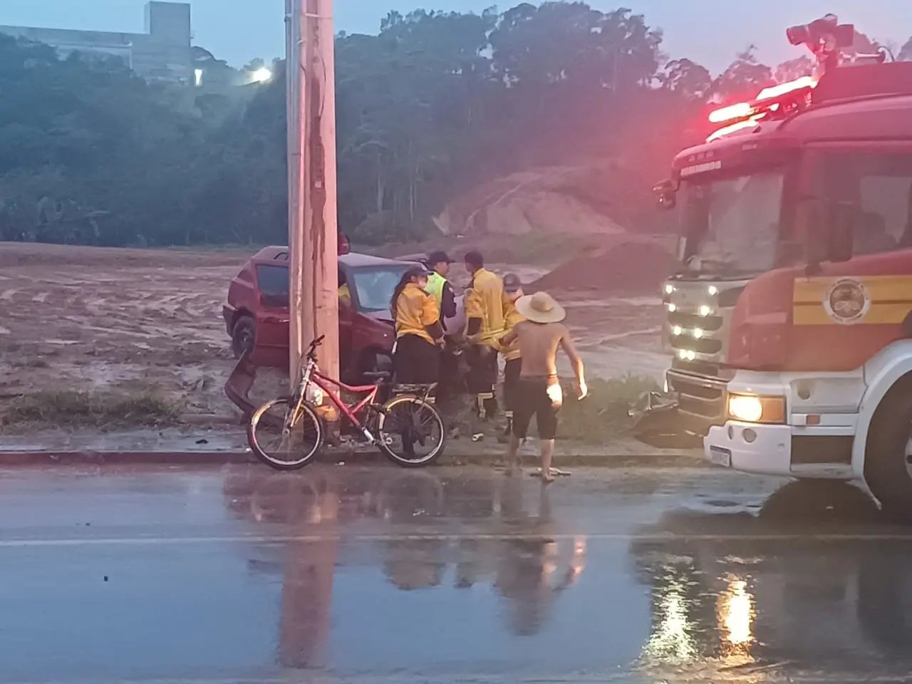 No final da tarde deste domingo (24), o Corpo de Bombeiros de Brusque foi acionado para um grave acidente, onde um carro colidiu contra um poste. A colisão ocorreu por volta das 17h40, na rua Beira Rio, no bairro Dom Joaquim.
