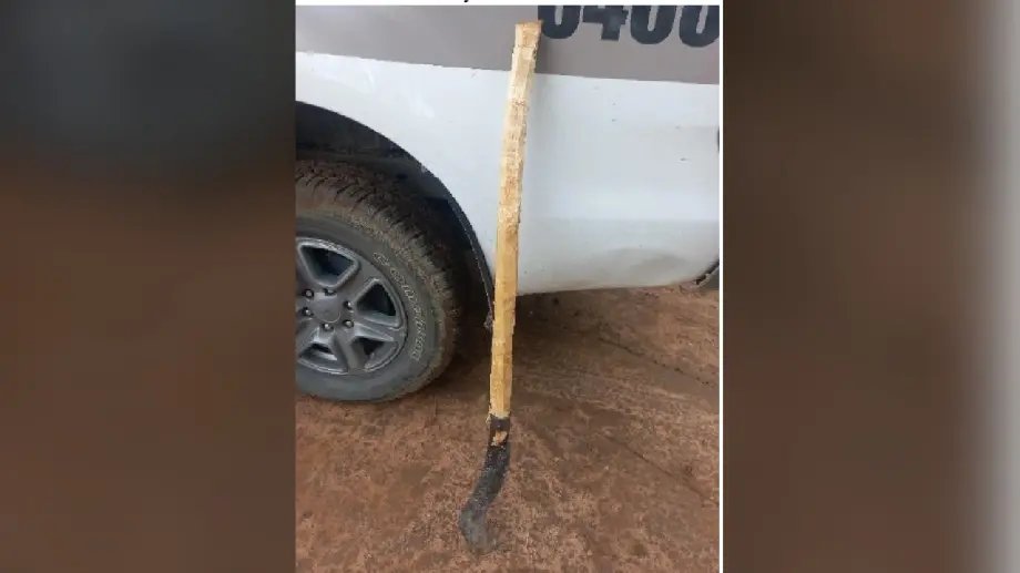 Conforme o relatório enviado pela PM, dois homens relataram que retornavam para casa de trator quando foram surpreendidos pelo suspeito, que estava no meio da rua e mandou que parassem. Em seguida, partiu para cima de um deles, xingando e dizendo que iria matá-lo, desferindo diversos golpes com a arma.