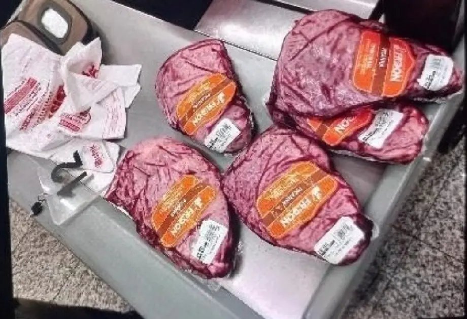 Segundo a Polícia Militar, o suspeito tentou passar a compra, avaliada em R$ 531,05, mas o cartão foi recusado. Na sequência, ele saiu do estabelecimento levando a carne sem pagar, sendo detido por seguranças.