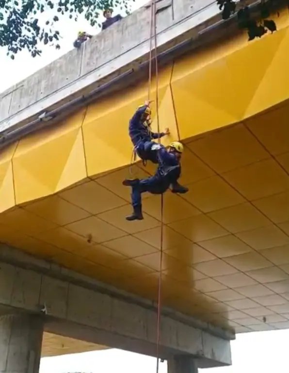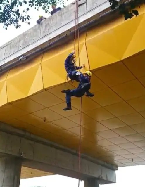 “Na simulação de hoje, vamos reproduzir um cenário de resgate de trabalhador em altura, conhecido como resgate do pintor, além do içamento de maca com vítima e resgatista a partir da ribanceira até a parte superior da ponte”, detalhou o soldado Lunardelli.