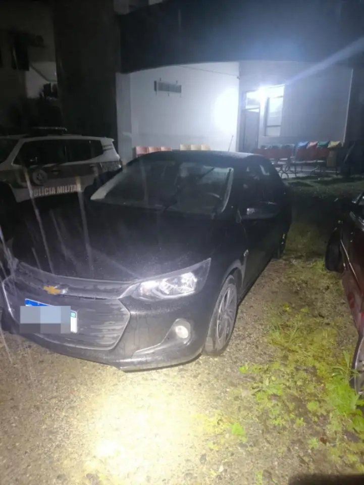 De acordo com a PM, o carro, um Chevrolet Onix Plus, havia sido furtado em Garuva e seguia em direção a Florianópolis. Durante a tentativa de abordagem, o condutor não obedeceu à ordem de parada e iniciou fuga. No percurso, o passageiro dianteiro arremessou diversos pacotes pela rodovia. A perseguição durou cerca de 2 quilômetros, até que o veículo estourou um pneu e foi obrigado a parar.