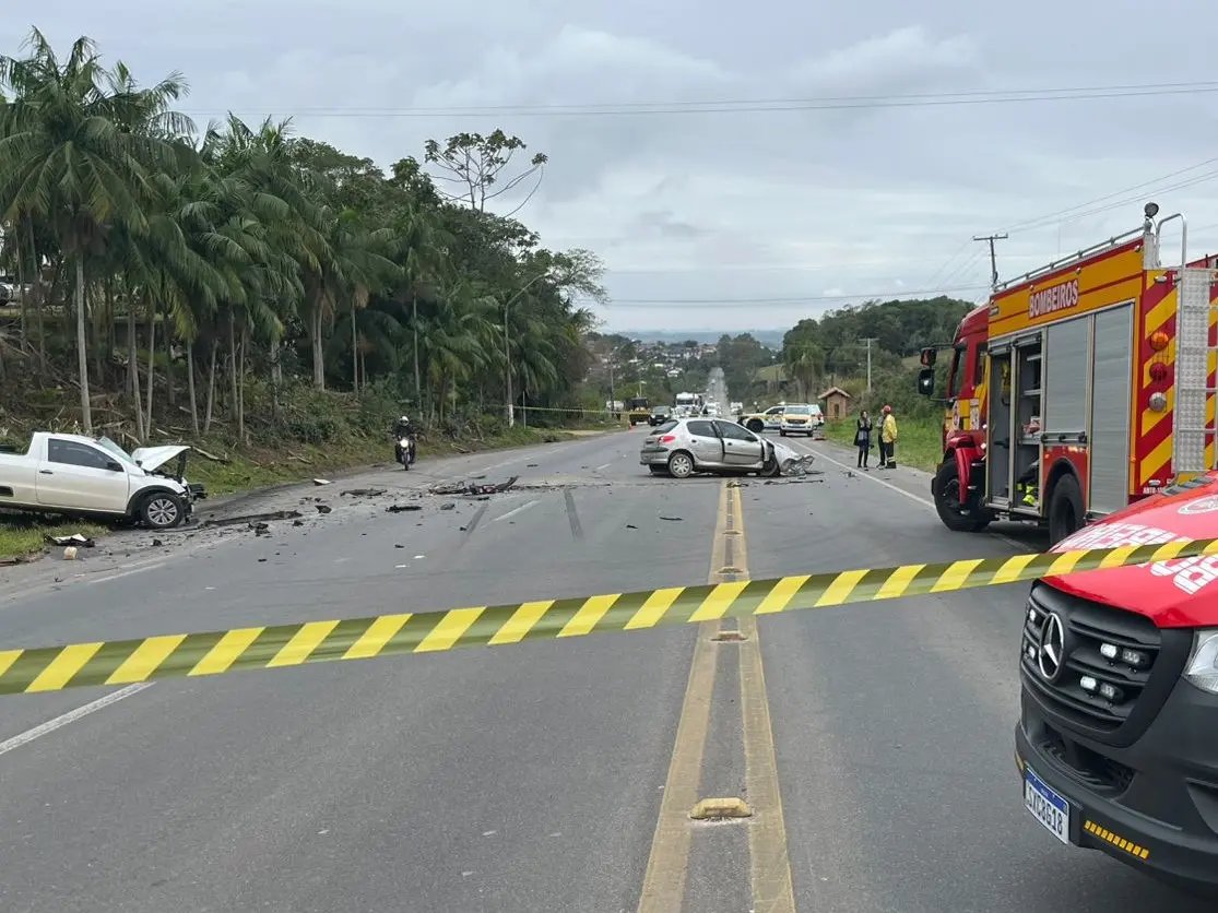 Um grave acidente de trânsito registrado na SC-108, resultou na morte de um homem e deixou outro ferido na tarde desta terça-feira (26). A colisão frontal entre um Volkswagen Saveiro branco e um Peugeot 206 ocorreu por volta das 12h49, no bairro Rio Galo, em Cocal do Sul.