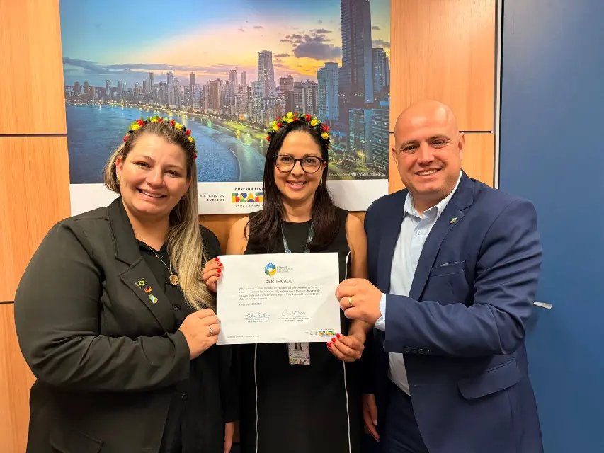 Em visita ao Ministério do Turismo, nesta quarta-feira (27), o vice-prefeito Deco Batisti e a diretora-geral de Turismo de Brusque, Juliana da Silva, receberam em mãos o certificado que oficializa o município no Mapa Nacional do Turismo. O documento é um passo importante na estratégia de fortalecimento do setor e eleva a visibilidade da cidade no cenário nacional.
