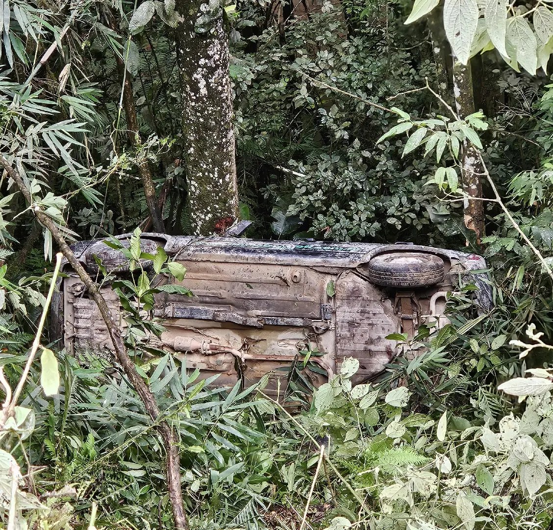 A tarde desta sexta-feira (29) foi marcada por um susto em Botuverá. Um carro saiu da pista e capotou em uma ribanceira por volta das 13h37, na região da rua Geral do Sessenta.
