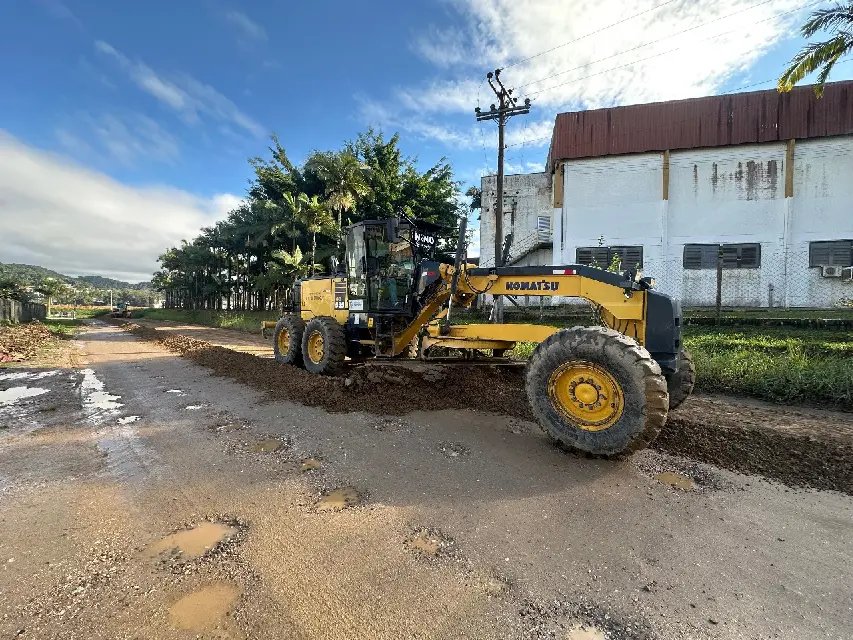 Nesta quinta-feira (28), após três dias consecutivos de chuva, a Secretaria de Obras intensificou os serviços de patrolamento para garantir melhores condições de tráfego nas vias do município.