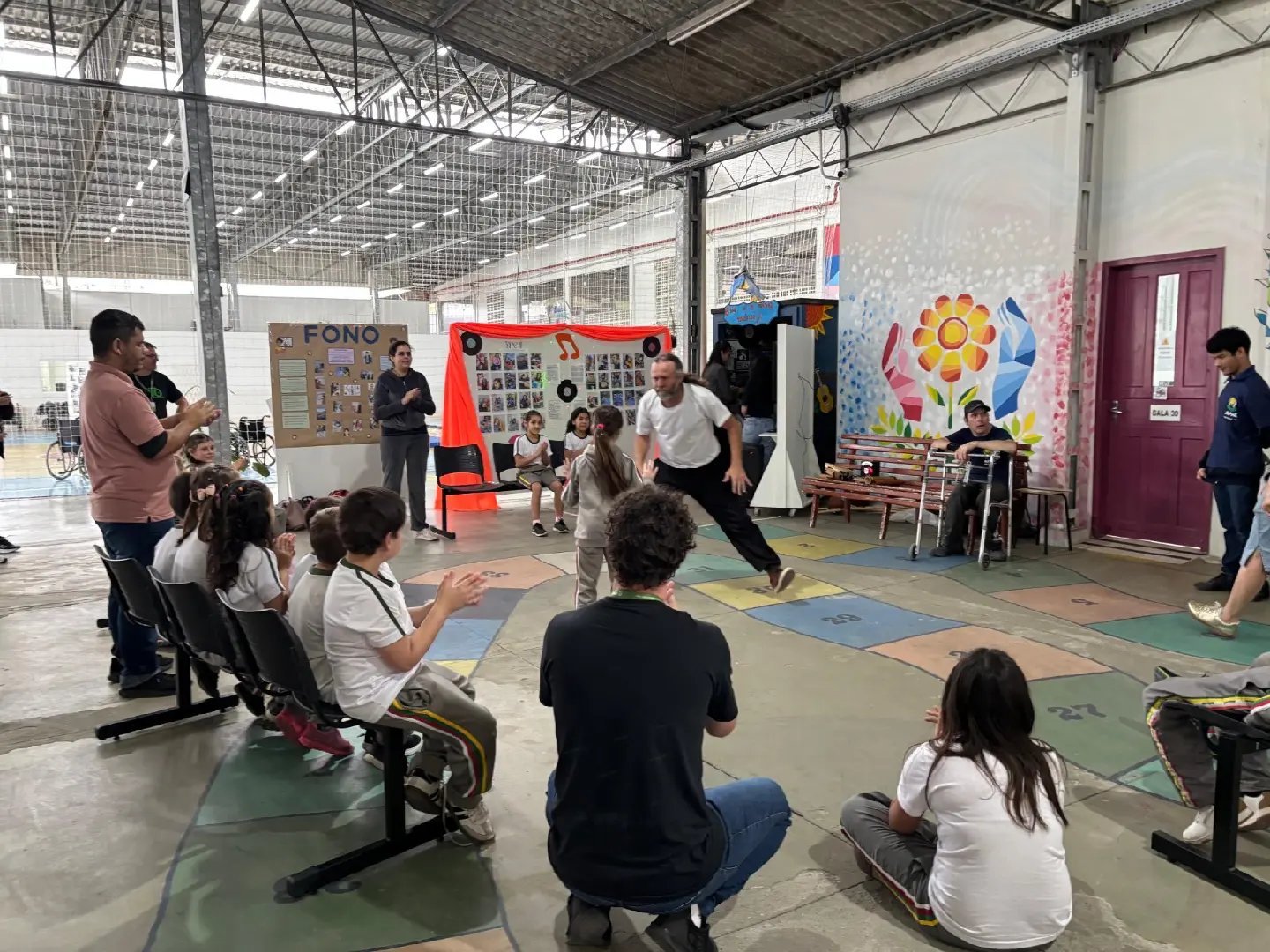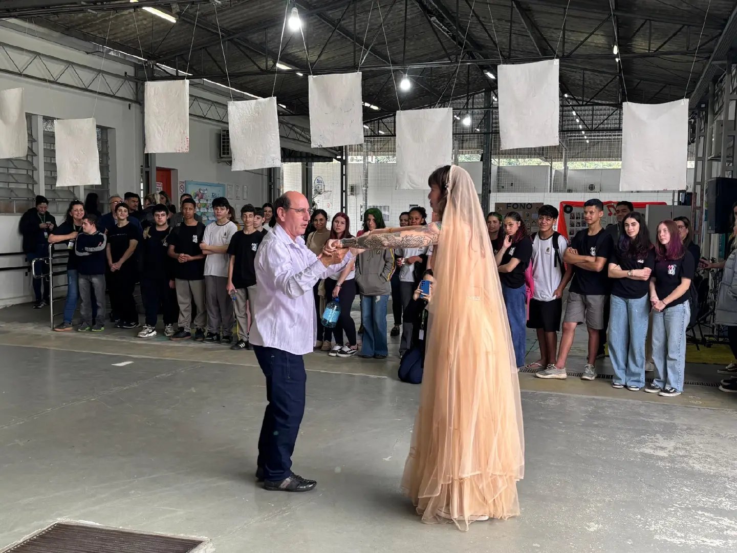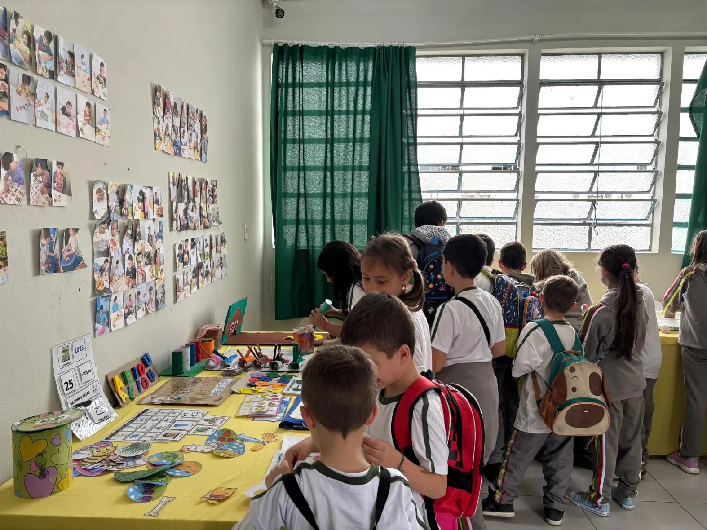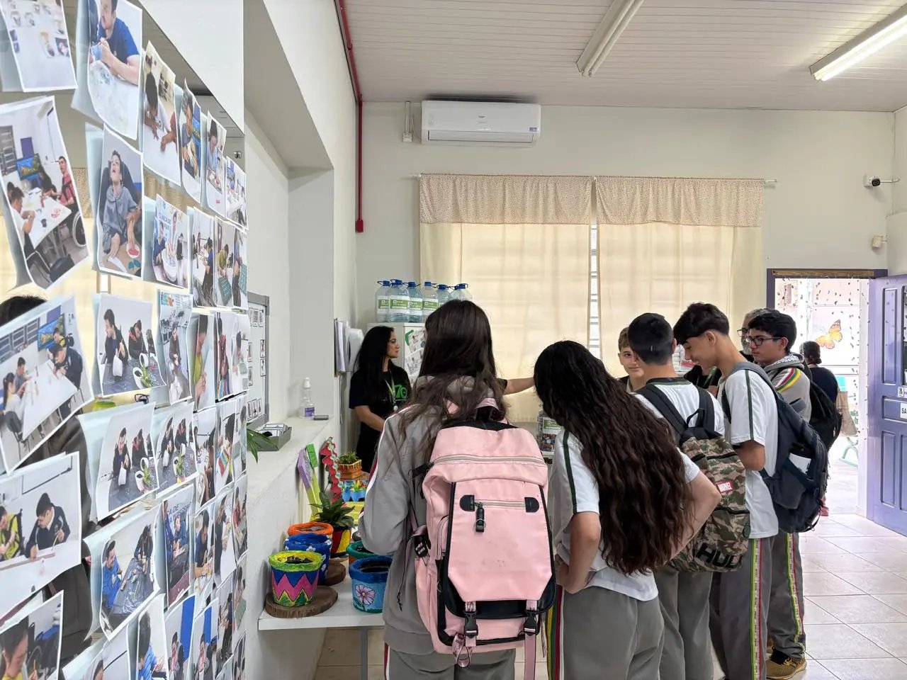 A Mostra também foi espaço de integração com estudantes da rede regular. A professora Joelma da Silva, da Escola de Educação Básica João Hassmann, levou a turma do 9º ano para conhecer a exposição.