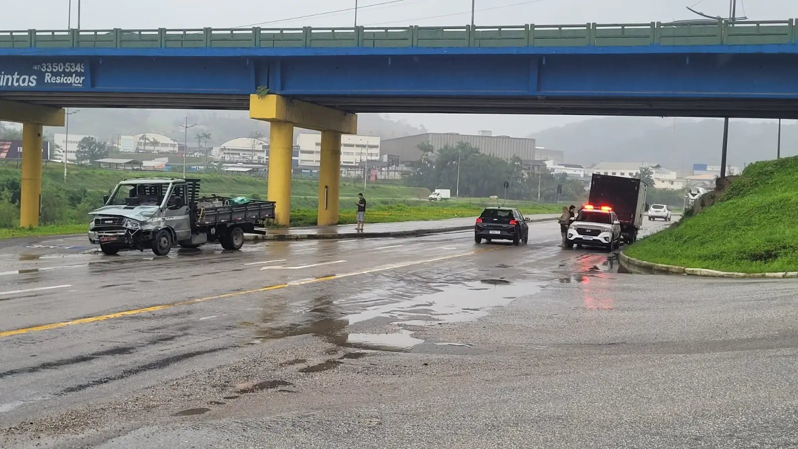 Um acidente entre dois caminhões deixou um homem ferido na tarde desta terça-feira (2), em Brusque. A colisão aconteceu por volta das 13h20 na avenida Beira Rio, no bairro Santa Rita, nas proximidades da Ponte do Trabalhador.