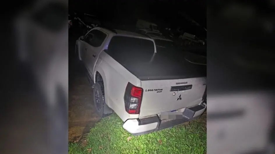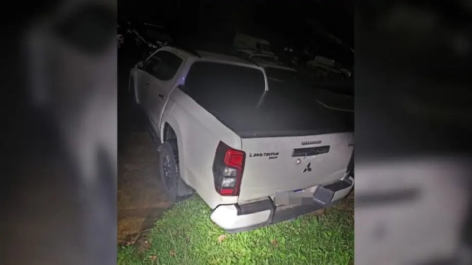 Após o crime, os suspeitos fugiram levando a caminhonete Triton branca da família. A PM acionou outras viaturas e o veículo foi localizado em Joinville, onde um dos envolvidos acabou preso e reconhecido pelas vítimas por foto.