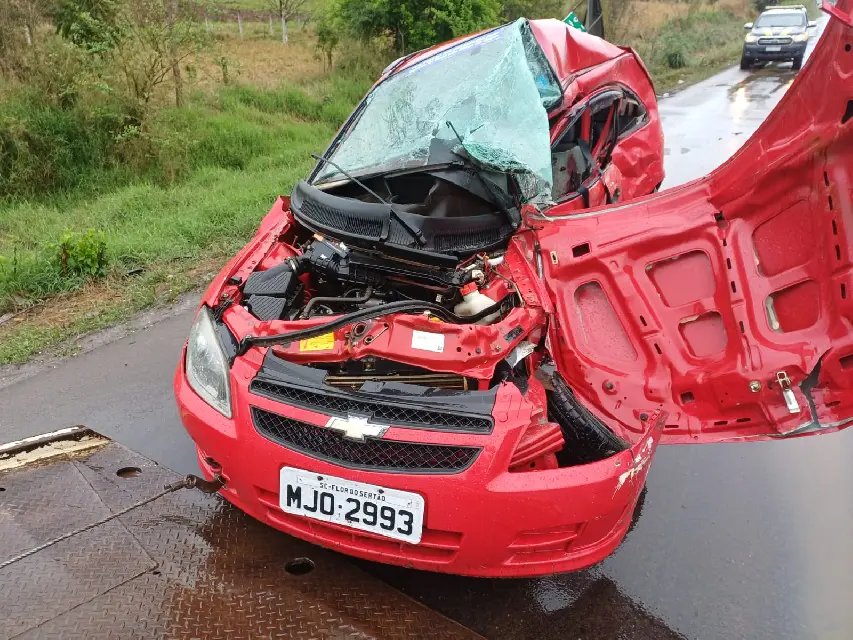 De acordo com a Polícia Rodoviária Federal (PRF), o acidente ocorreu na BR-282, no trevo de acesso a Flor do Sertão. O carro era um Chevrolet Celta e a carreta tinha placas de Cáceres (MT). As vítimas foram identificadas como Ivanir Falkovski, de 61 anos, e a esposa dele, de 59 anos.