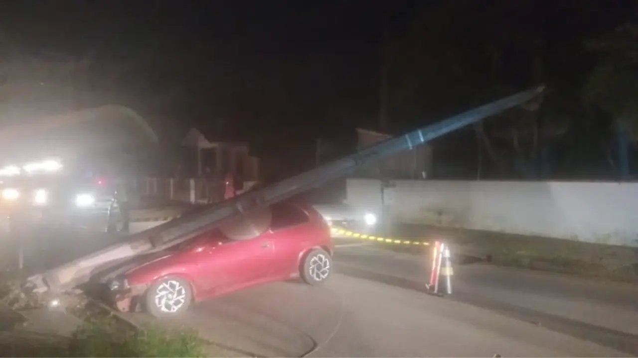 O impacto derrubou o poste sobre o veículo e rompeu fiações de baixa tensão, que ficaram espalhadas sobre a pista. De acordo com os bombeiros, o carro era conduzido por um homem de 41 anos. Ele estava consciente, orientado e usava cinto de segurança no momento do acidente. Apesar do susto, o motorista não apresentava ferimentos nem queixas de dor, e recusou encaminhamento ao hospital após ser avaliado pelos socorristas, que confirmaram sinais vitais normais.