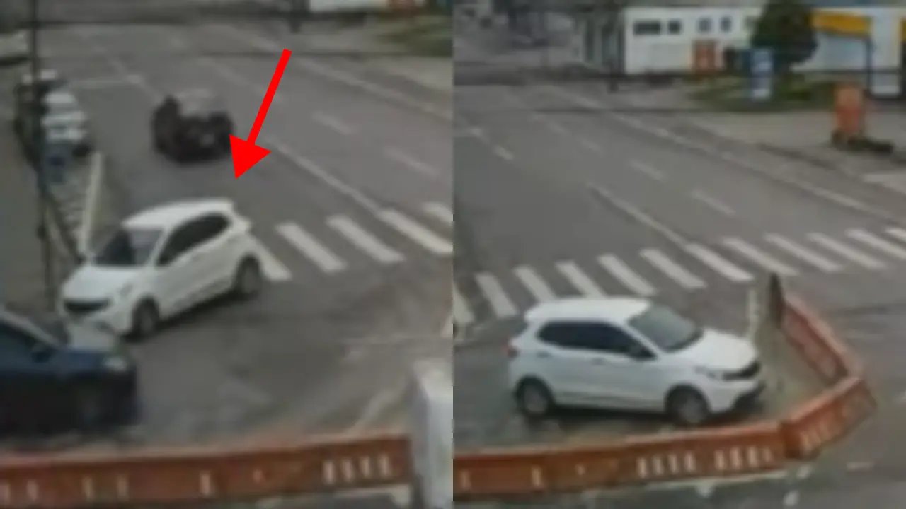 O local passou por alterações no trânsito devido às obras de macrodrenagem da Avenida Primeiro de Maio, de forma que a Getúlio Vargas virou três pistas sentido Centro. Na filmagem, um veículo Fiat Argo aparece do outro lado da avenida, na faixa sentido bairro, ao lado do posto de combustíveis, e tenta seguir reto, driblando as barreiras de sinalização que impedem a manobra.