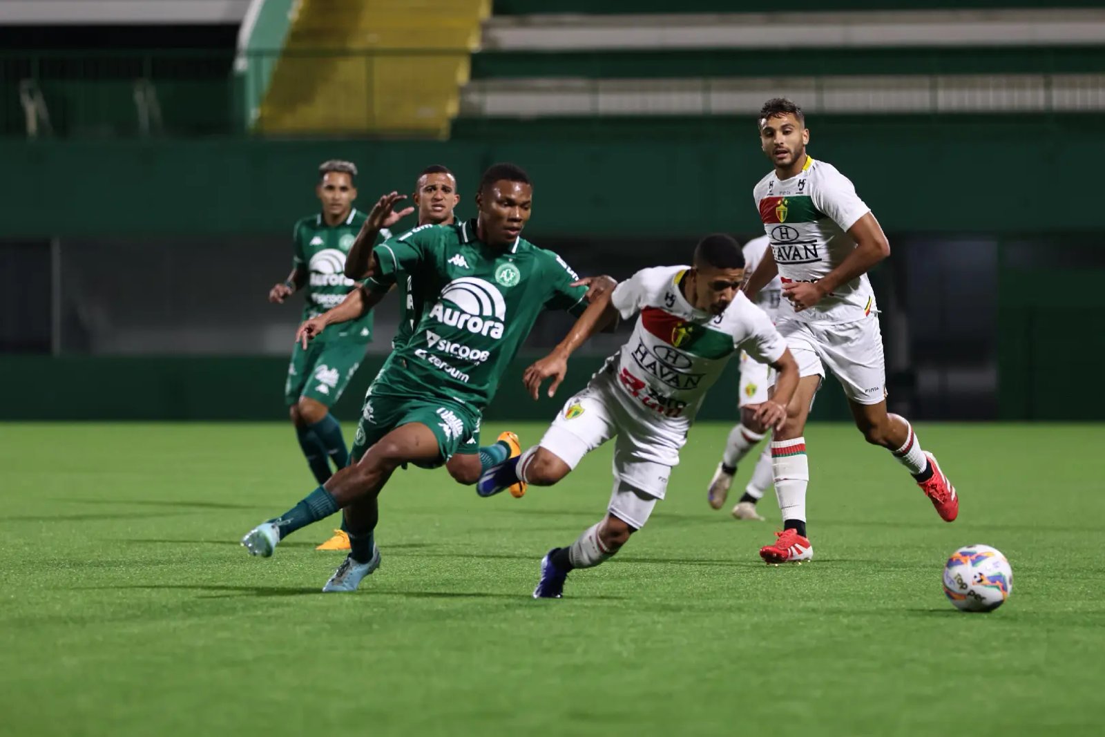 O primeiro tempo começou movimentado, com as duas equipes buscando o gol. A Chape, empurrada pela torcida, tentava conquistar a segunda vitória, enquanto o time alternativo do Brusque buscava somar seus primeiros pontos na competição.