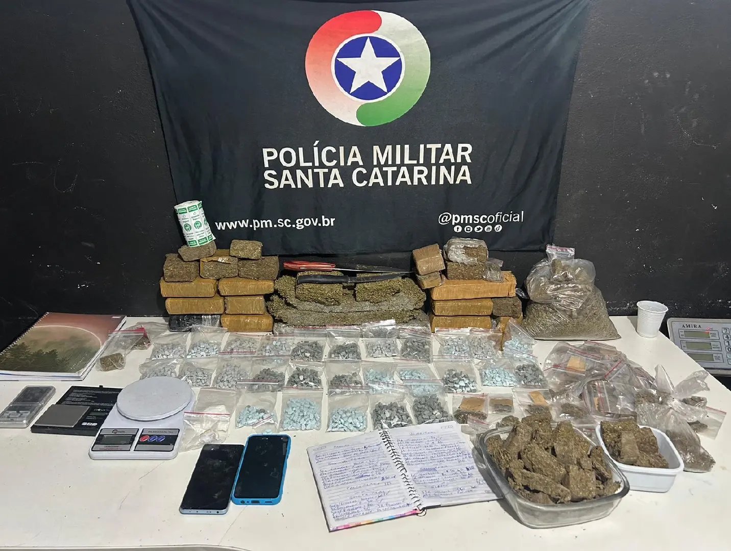 Uma operação da Polícia Militar na tarde de sexta-feira (19) terminou com a apreensão de mais de 10 kg de maconha, milhares de comprimidos de ecstasy e cocaína em Itajaí. O suspeito, de 24 anos, utilizava uma latoaria como ponto de tráfico e armazenava parte das drogas em uma residência.