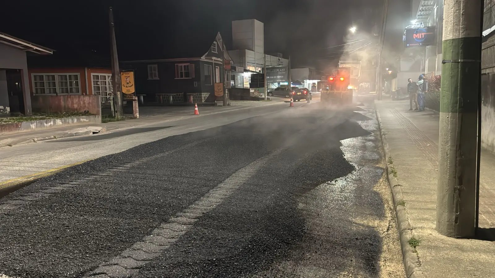 Segundo ele, os serviços começaram com a limpeza da via e retirada da poeira, para em seguida receber a pintura e aplicação da massa asfáltica. Os pontos que já haviam sido fresados ou que necessitam substituição de base também estão sendo recuperados. “Hoje já começamos com patrola, pintura e compactação, sempre à noite e com apoio do trânsito. Nossa intenção é concluir em até sete dias, mas esperamos terminar antes desse prazo”, finaliza Bruns.