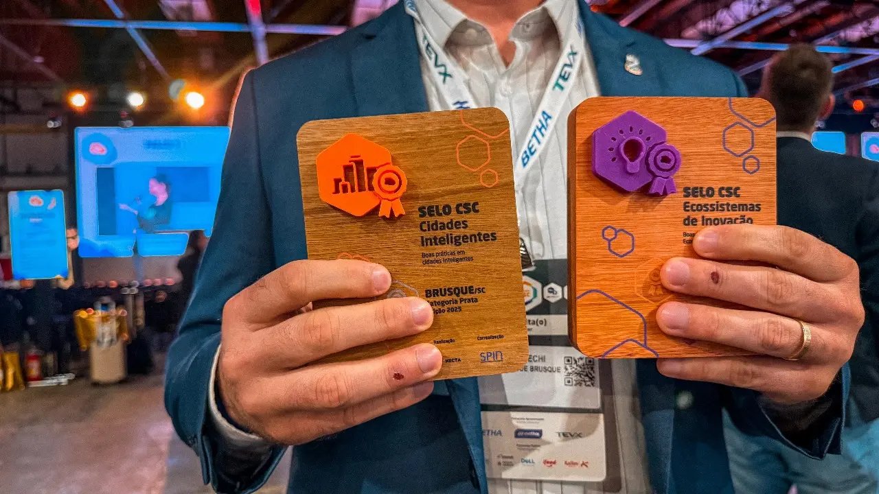 Além da premiação principal, Brusque também conquistou outros dois reconhecimentos importantes. Um deles é o Selo de Ecossistema de Inovação, no qual o município evoluiu da categoria Prata, em 2024, para categoria Ouro neste ano. O topo da certificação é o selo Diamante, atualmente concedido a apenas dois municípios no país.