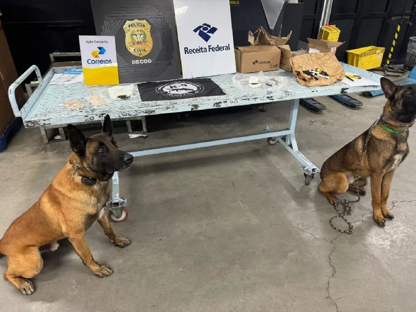 Foram encontrados ecstasy, haxixe e skunk, drogas sintéticas e derivadas da cannabis, escondidas entre os volumes interceptados. A operação teve como diferencial a atuação integrada de equipes especializadas da Polícia Civil, Receita Federal e Correios, além do apoio essencial dos cães de faro do COPC (Canil Operacional de Polícia com Cães) e da Receita Federal, que foram fundamentais para localizar os entorpecentes.