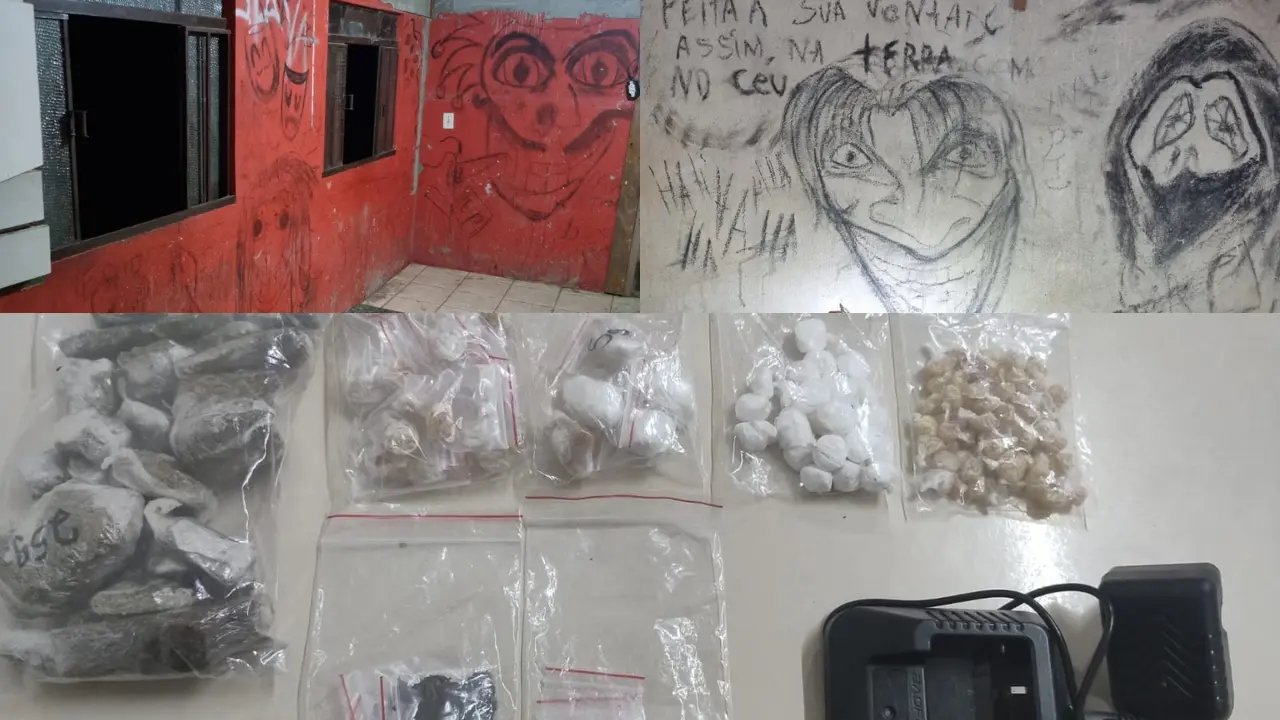 Na residência, utilizada como ponto de tráfico, foram encontradas diferentes drogas, entre elas LSD, cocaína, crack, maconha e MDMA. Também foram localizadas pichações com referências ao crime organizado. A arma do homem — um revólver calibre 38 com numeração raspada — foi apreendida pela Polícia Científica.