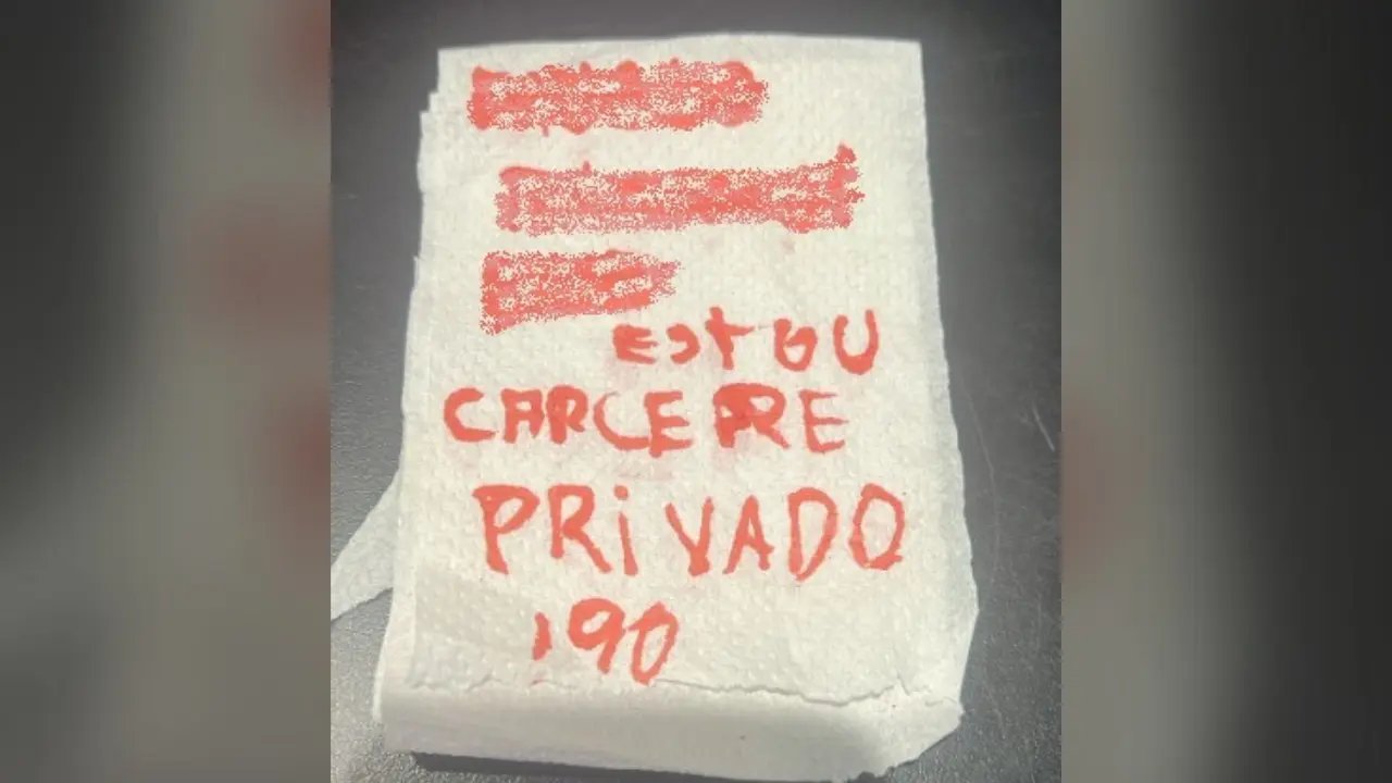 Segundo o relatório da PM, um funcionário encontrou o bilhete no banheiro e acionou o COPOM, que enviou uma guarnição ao endereço indicado, no bairro Gasparinho. No local, os policiais localizaram a vítima em estado de choque, com lesões no pescoço, rosto e seios.