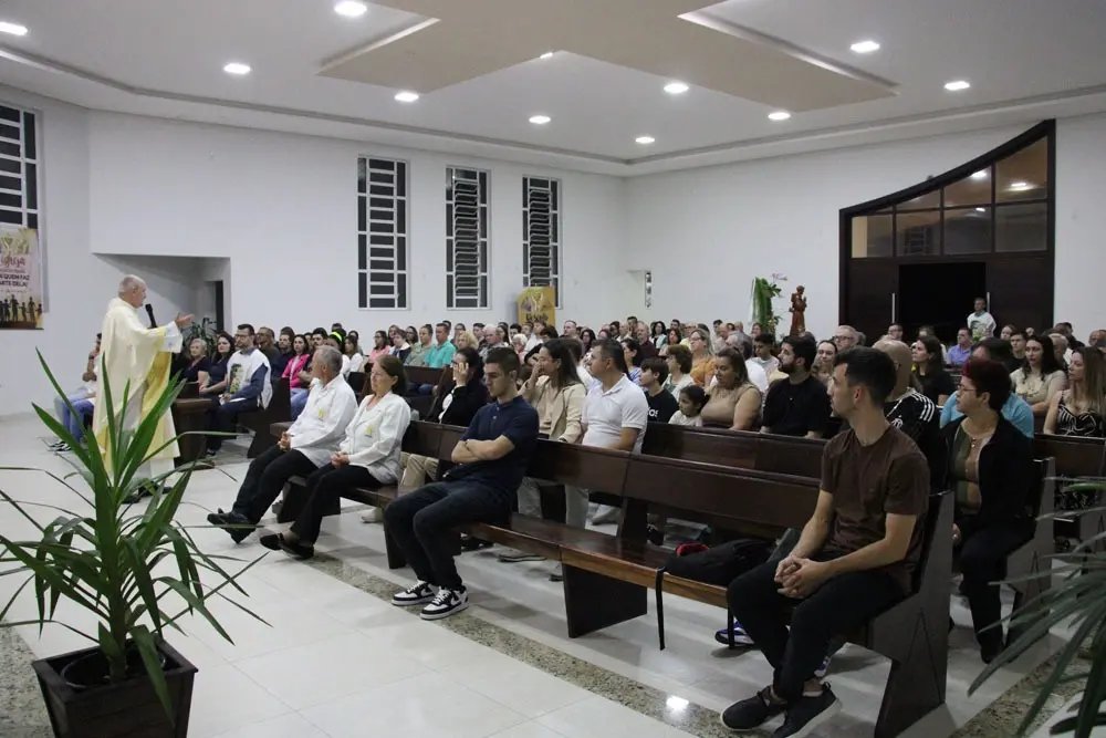 “Na primeira noite tivemos a missa celebrada pelo padre Adilson Colombi, com o tema “São Francisco e a virtude da humildade”. Já na segunda noite, recebemos o padre Tiago Araújo e refletimos sobre “São Francisco e a virtude da pobreza”. Já no último dia de preparação, a celebração foi presidida pelo padre Rodrigo Taschek, com o tema “São Francisco e a virtude do amor”. Ficamos muito felizes em ver a comunidade lotando a igreja todos os dias e vivendo este momento especial”.