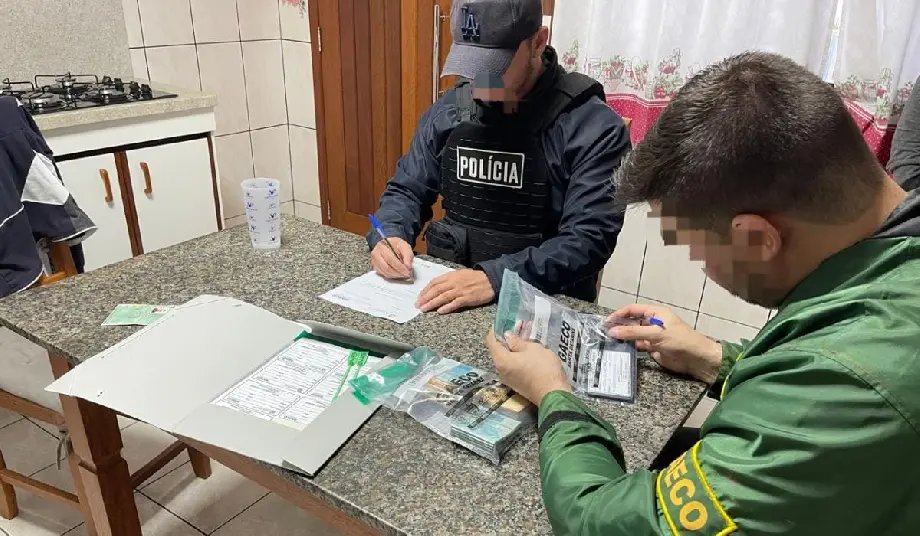 De acordo com o Gaeco, dois mandados de busca e apreensão foram cumpridos em endereços ligados ao investigado na capital catarinense. Durante a operação, os agentes apreenderam R$ 14.200 em espécie, além de documentos e dispositivos eletrônicos que podem ajudar a esclarecer o alcance das fraudes.