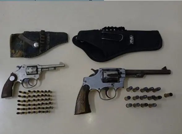 Em seguida, a mulher apontou outro local da residência, onde os policiais encontraram um segundo revólver, calibre .38, municiado, além de diversas munições intactas e uma cápsula deflagrada.