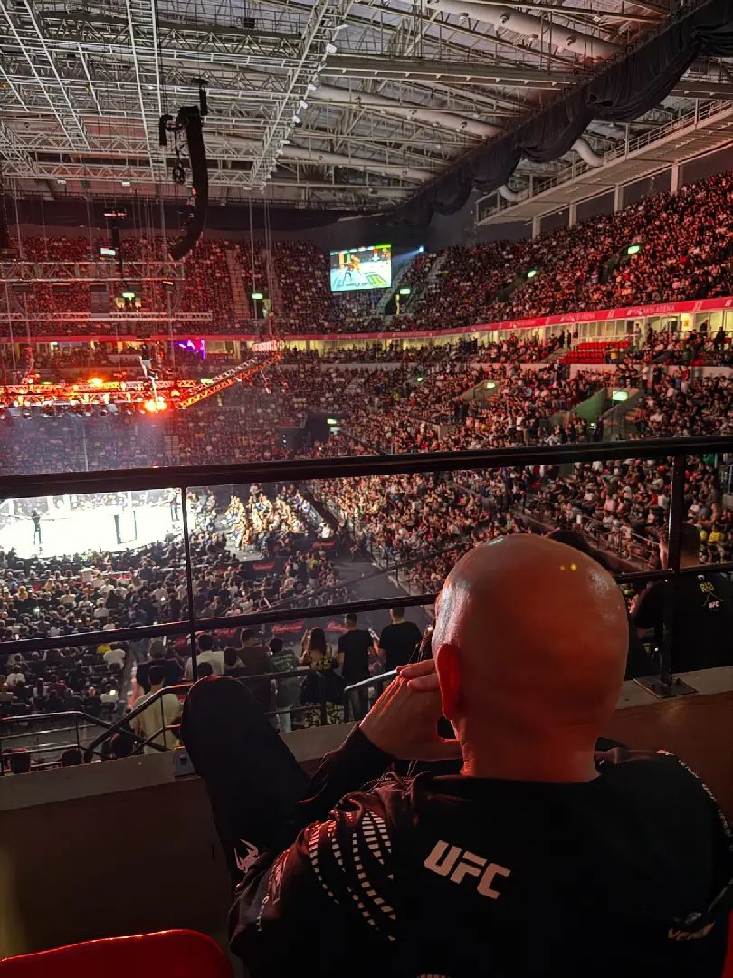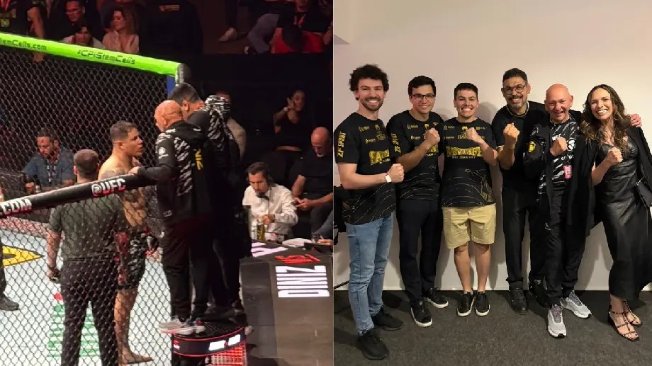 Acompanhado da família e de amigos, o empresário participou dos momentos que antecederam a luta, acompanhou a preparação de Jhonata, a concentração e o aquecimento antes da entrada no octógono.