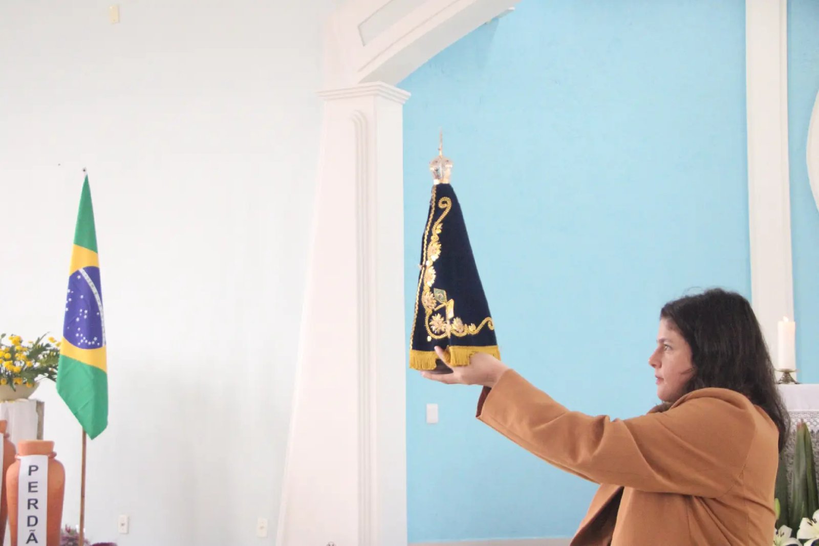Ainda durante a missa, a comunidade se uniu em oração pelas crianças e pelo Brasil, pedindo a proteção da padroeira sobre o país.