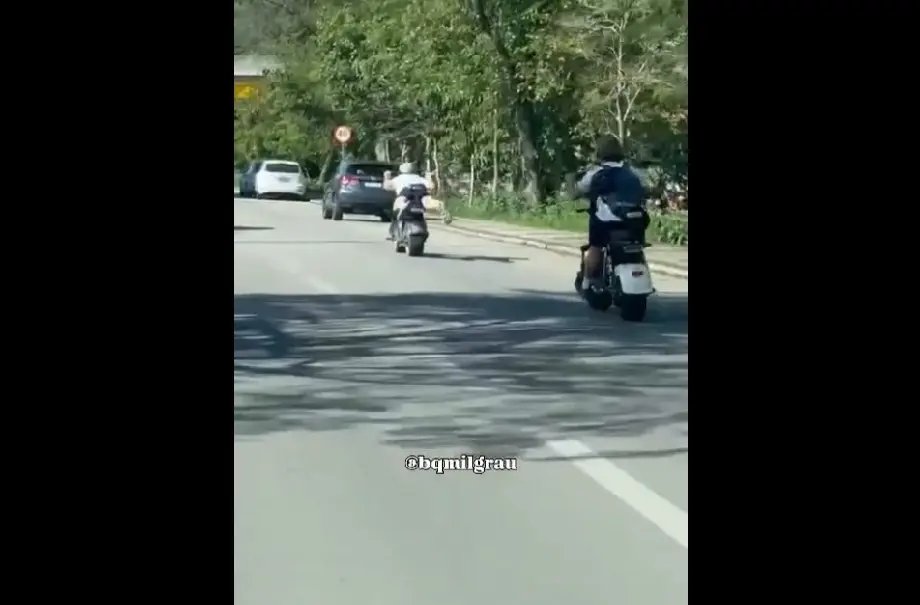 Um vídeo que circula nas redes sociais nas últimas horas vem chamando atenção em Brusque. Nele, o condutor de um ciclomotor aparece deitado sobre o veículo na chamada “posição Superman”, em vez de estar sentado pilotando, colocando sua própria segurança em risco.
