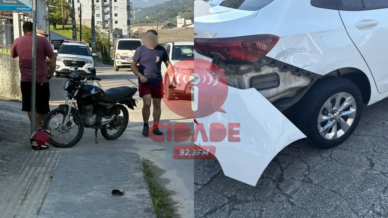 As informações foram apuradas no local pela Cidade FM. O acidente envolveu um automóvel Sedan branco e uma motocicleta. O motorista do carro, Joel da Silva Gonçalves, de 42 anos, contou que sinalizou para entrar em uma oficina mecânica quando o motociclista acabou batendo na lateral do veículo. “Eu dei o sinal e entrei devagar, mas ele veio muito rápido e acabou colidindo”, relatou Joel.