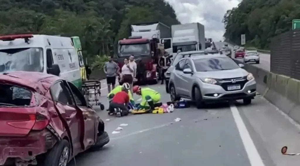 De acordo com informações da Polícia Rodoviária Federal (PRF), um Hyundai HB20 perdeu o controle, bateu na mureta central, capotou diversas vezes e acabou parando na pista contrária. Durante o impacto, uma mulher de 56 anos, que estava no banco do passageiro, foi arremessada para fora do veículo e encontrada ferida e com sangramento na pista.