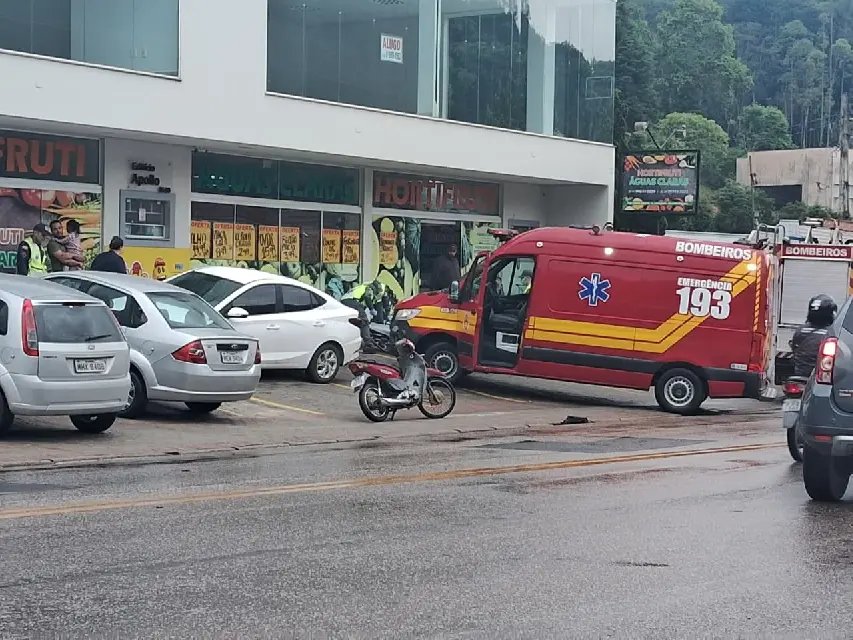 Um acidente de trânsito registrado na manhã desta terça-feira (21), por volta das 07h30, mobilizou o Corpo de Bombeiros na Rua Florianópolis, no bairro Primeiro de Maio, em frente ao posto BR, em Brusque. A colisão envolveu um carro Hyundai HB20, de cor branca, e uma motocicleta Honda Biz vermelha.