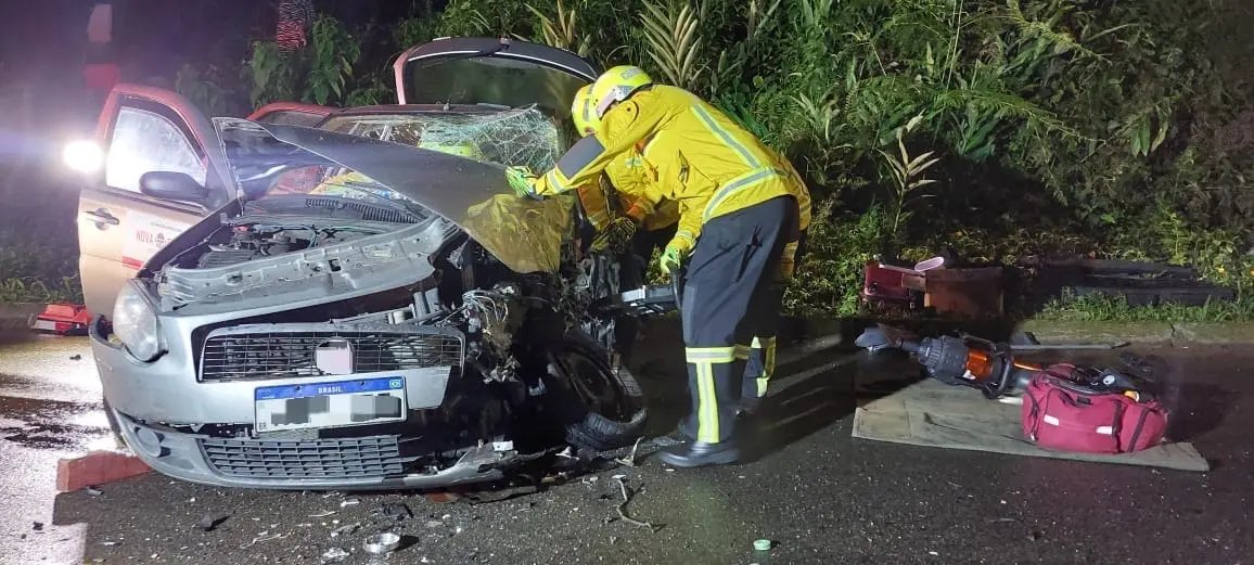 A colisão entre um ônibus do transporte coletivo de Blumenau e um carro deixou uma pessoa presa às ferragens na noite desta terça-feira (21). O acidente aconteceu por volta das 21h40, na Rua Silvano Cândido da Silva Sênior, no bairro Ponta Aguda, e envolveu outra vítima.