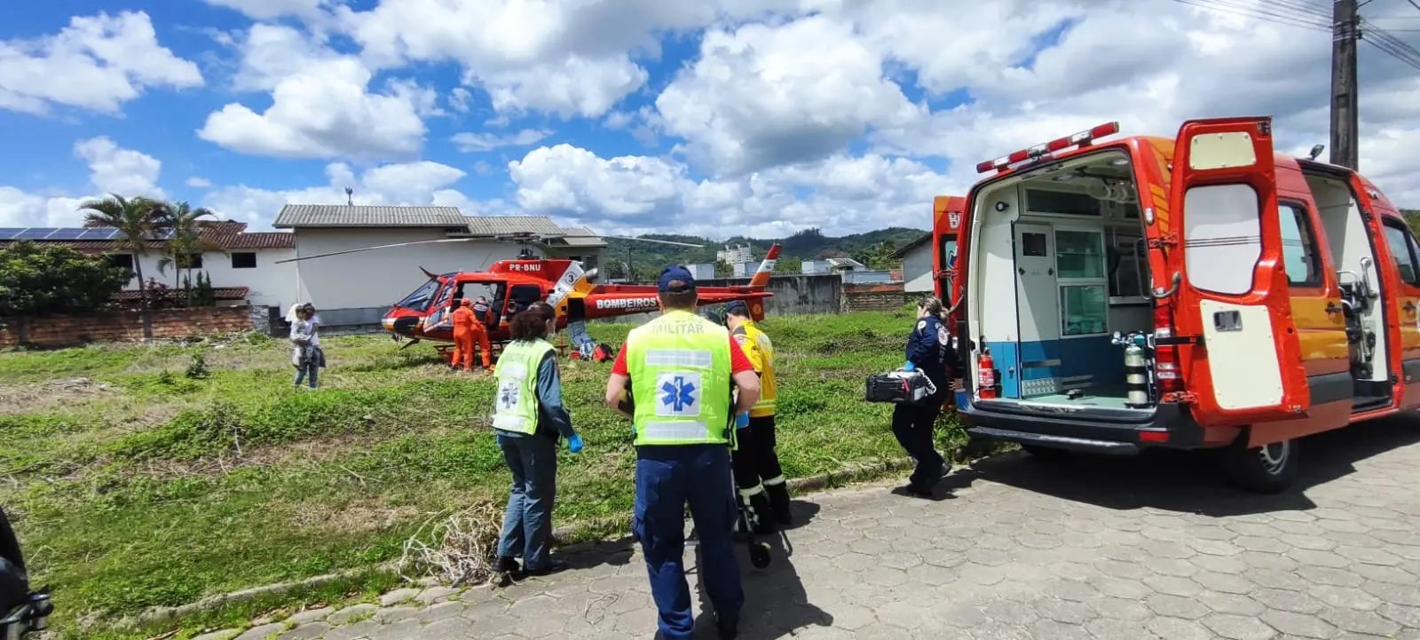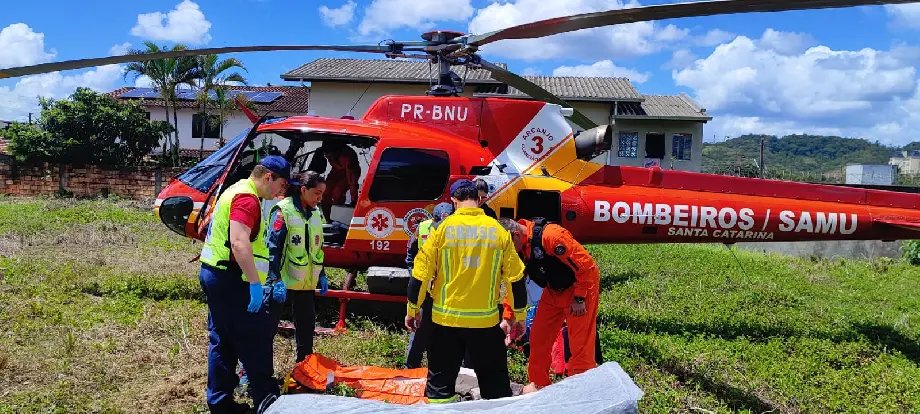 Um idoso foi atendido em situação grave após apresentar sintomas de infarto, sendo transportado de helicóptero ao Hospital Azambuja para acompanhamento médico especializado. O fato ocorreu em Gaspar, na manhã desta quarta-feira (22).