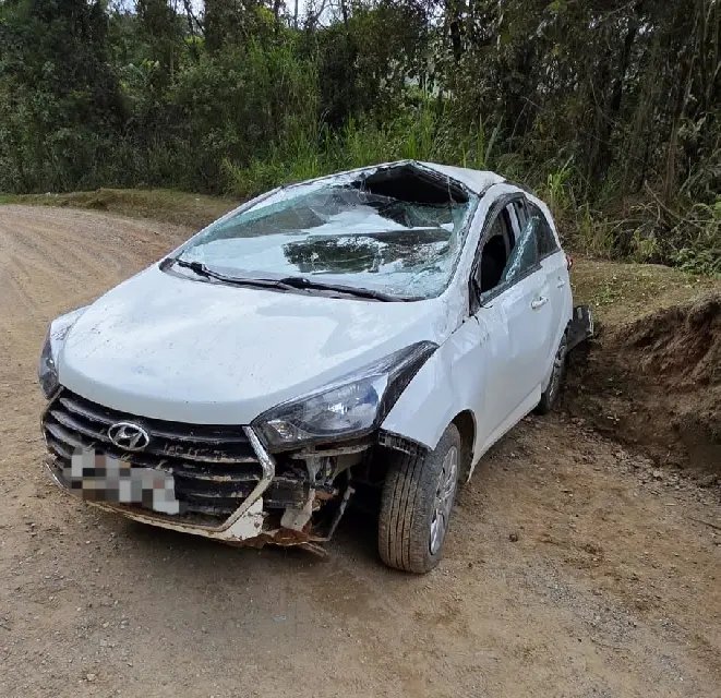 Uma mulher de 38 anos perdeu o controle do carro e saiu da pista na manhã desta quinta-feira (23), na rua Lageado Alto, bairro de mesmo nome, em Guabiruba. O veículo, um Hyundai HB20 branco, ficou fora da via.