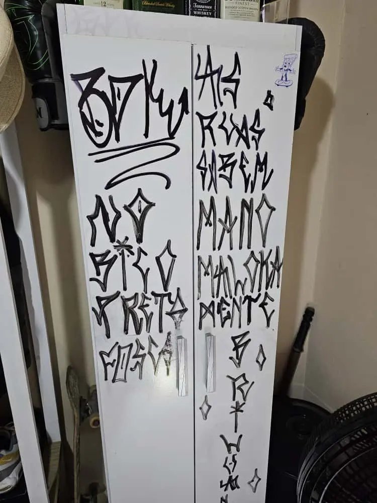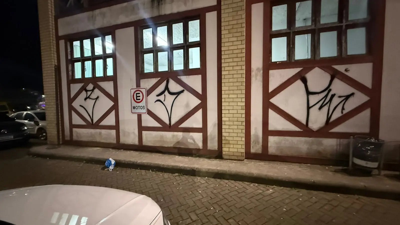 Além disso, foi identificada uma pichação em um ponto de ônibus na cidade de Guabiruba com as mesmas características daquelas realizadas em Brusque.